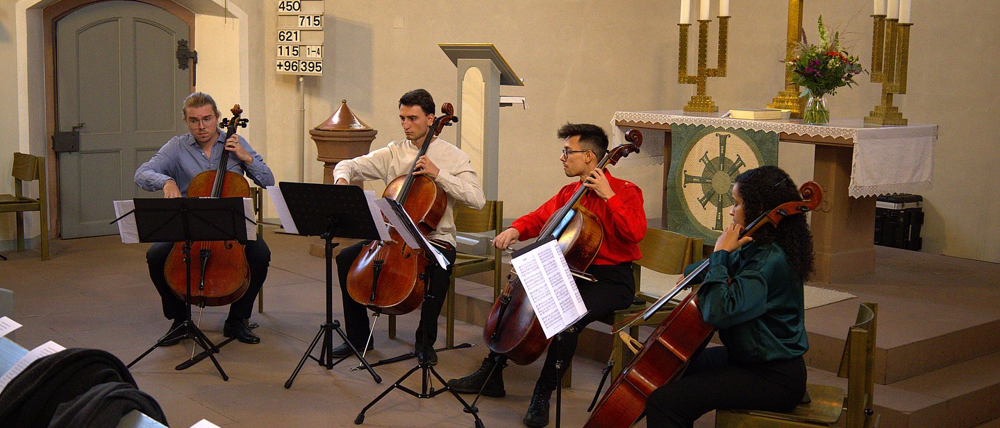 Der Altarraum/Chorraum hat genügend Platz für eine Band. Ggf. kann man Bänke abschrauben, um einem Orchester Platz zu machen (bis 40 Personen!).